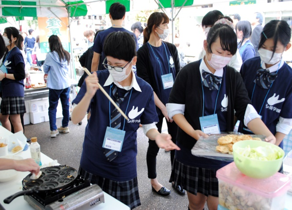 地域イベント「米百俵まつり」でパンケーキ店を出店し、美術デザインコース・クリエイティ部は校舎2階で作品グループ展を開催します。和風をテーマにしたコスプレ企画も実施し、地域に貢献!