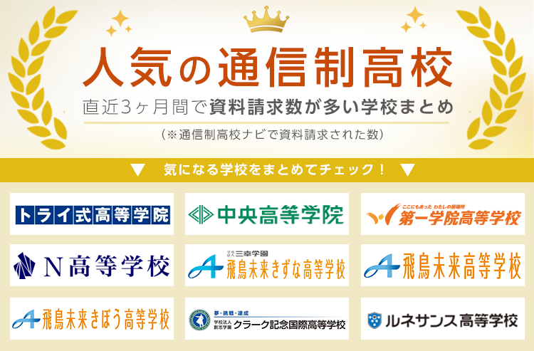 資料請求数をもとにした『人気の通信制高校』はこちらです。